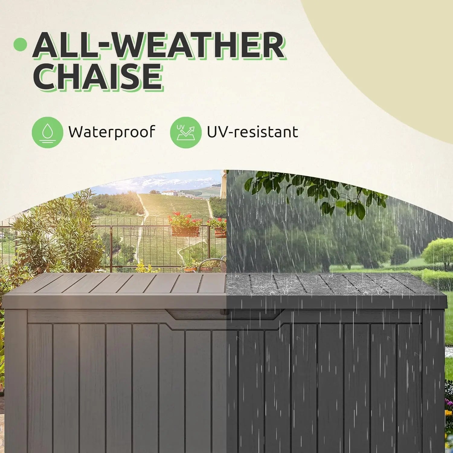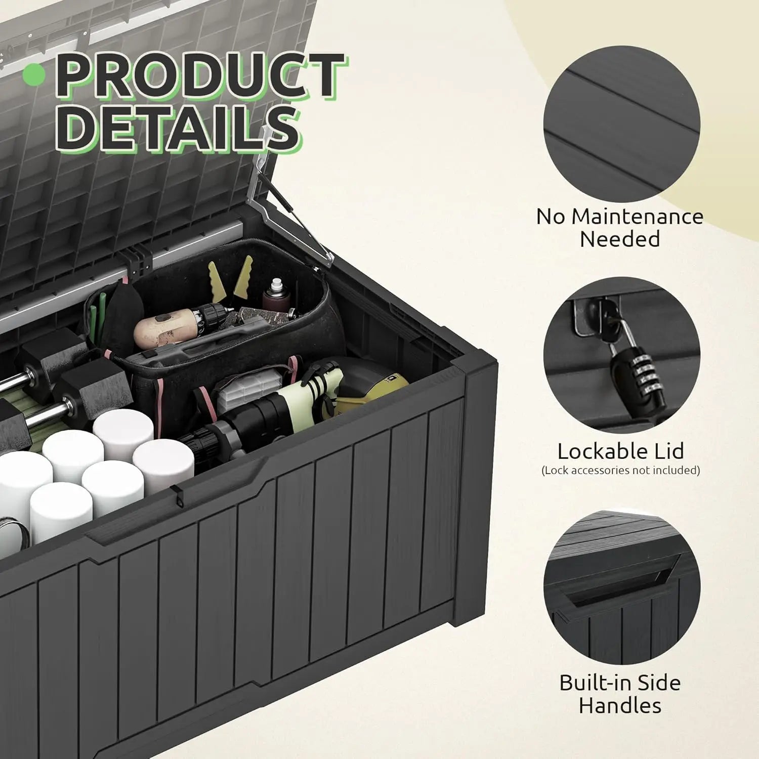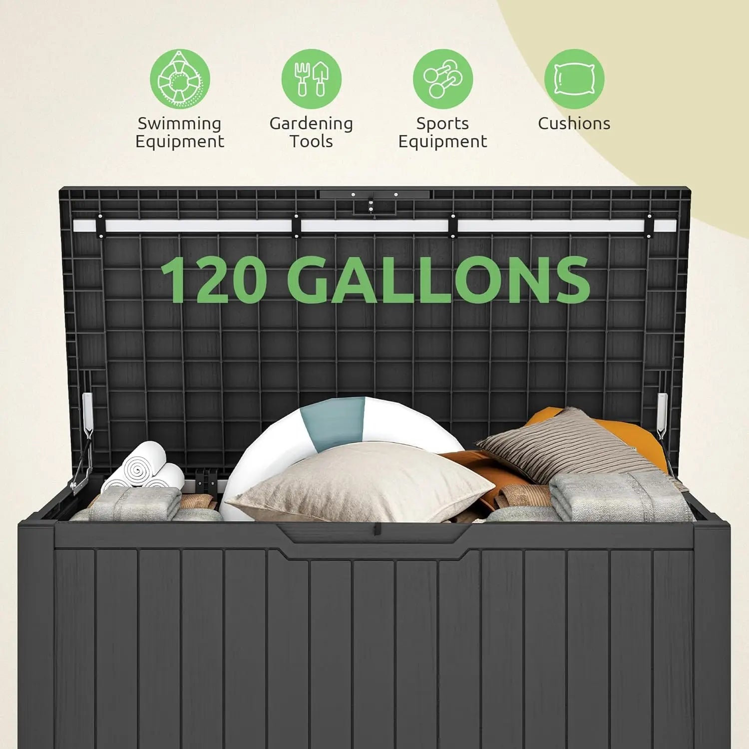 120-Gallon Resin Outdoor, Lockable Lid Storage Box, Waterproof for Garden Tools, Pool Supplies, and Sports Gear
