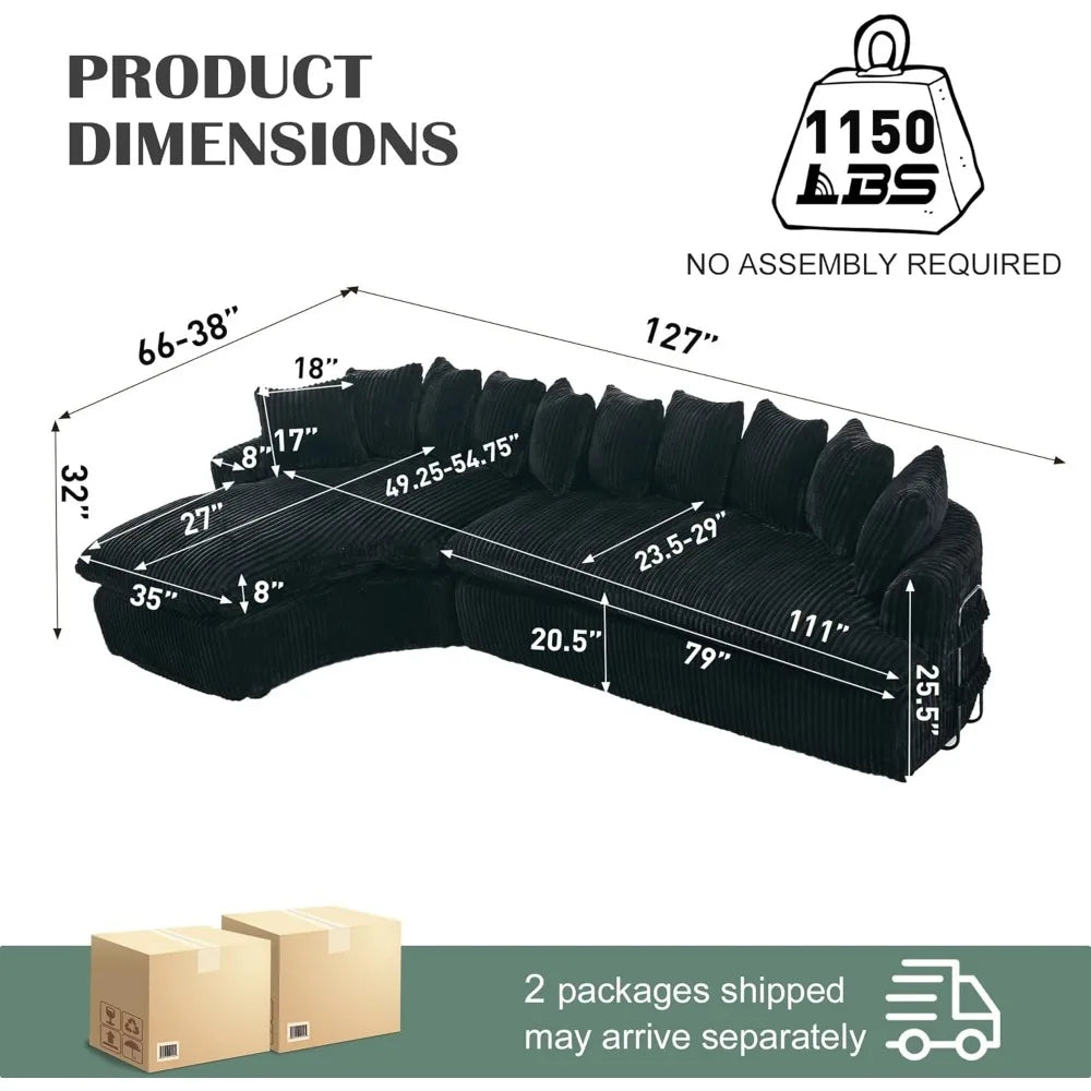 127'' Modern Curved Corduroy Cloud Sofa - 4 Color Choices