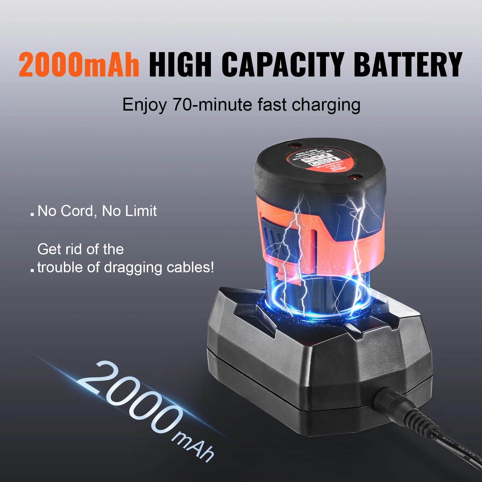 12V Electric Drain Auger 25FT Cordless Plumbing Snake: Auto Feed Pipeline Drain Clog Remover, 2.0Ah Battery Charger