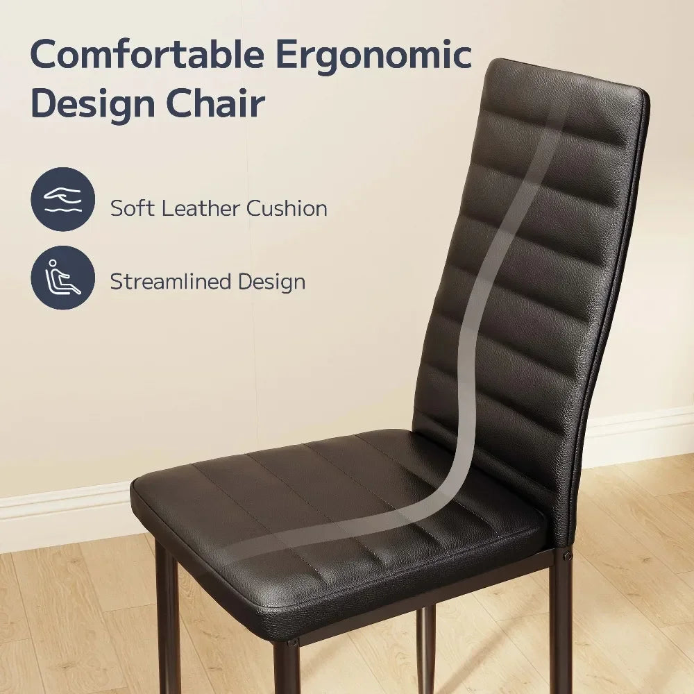 5 Piece Glass Dining Table Set for 4, PU Leather Chairs, Black or White