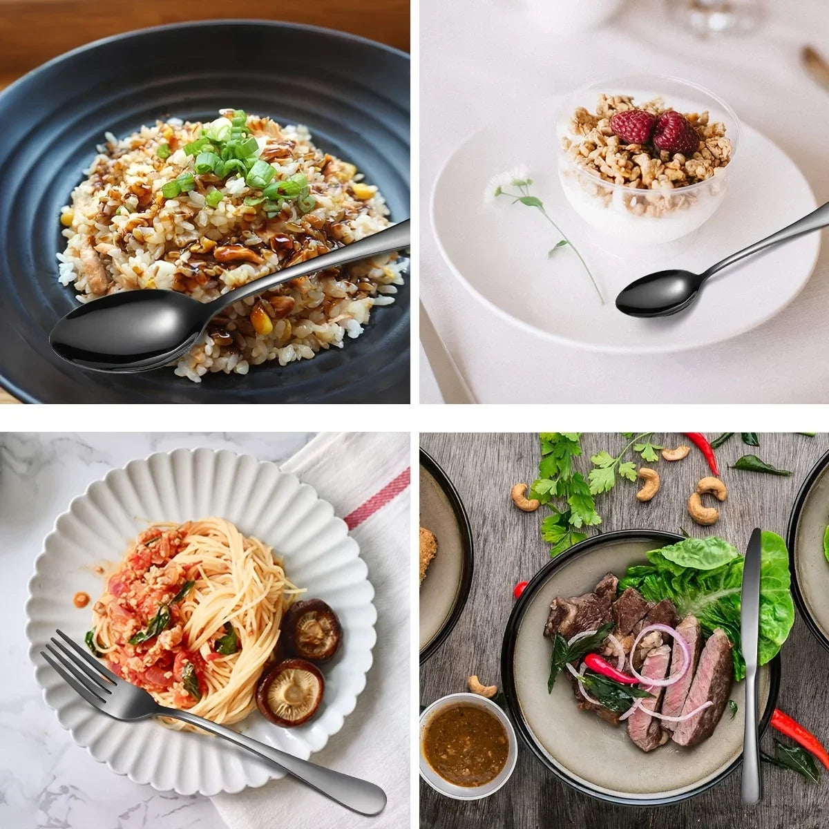 60pc Black Silverware Set For 12: Stainless Steel Flatware Set, Tableware,Dishwasher Safe