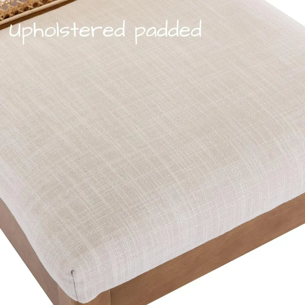 Upholstered Natural Wood Rectangle Cane Country Farmhouse Rattan Dining Chairs - Set of 6